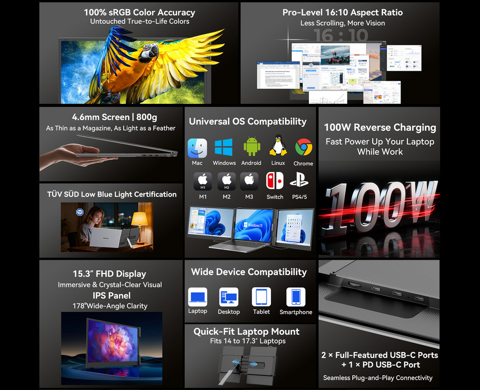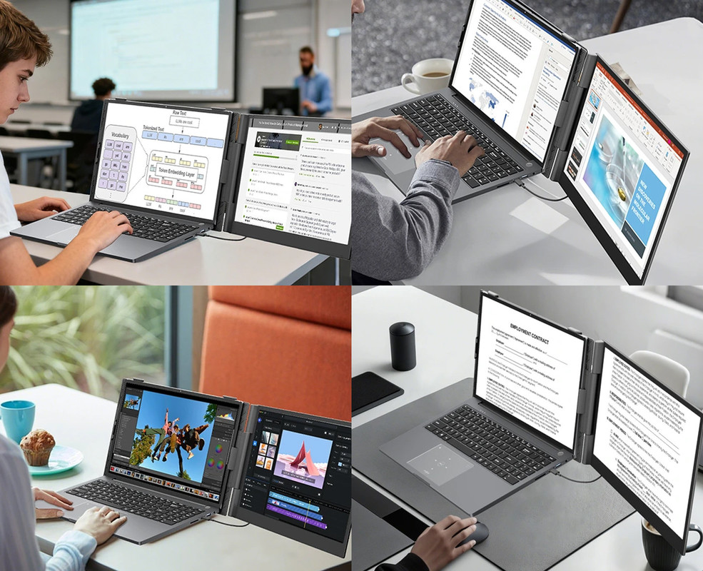 Spremenite kateri koli prostor v svojo mobilno delovno postajo z učinkovitostjo dveh zaslonov. Izjemno lahek in prijazen do oči, izboljša osredotočenost, zmanjša obremenitev oči in vam omogoča nemoteno opravljanje več nalog hkrati – ne glede na to, ali delate, se učite ali ustvarjate na poti.