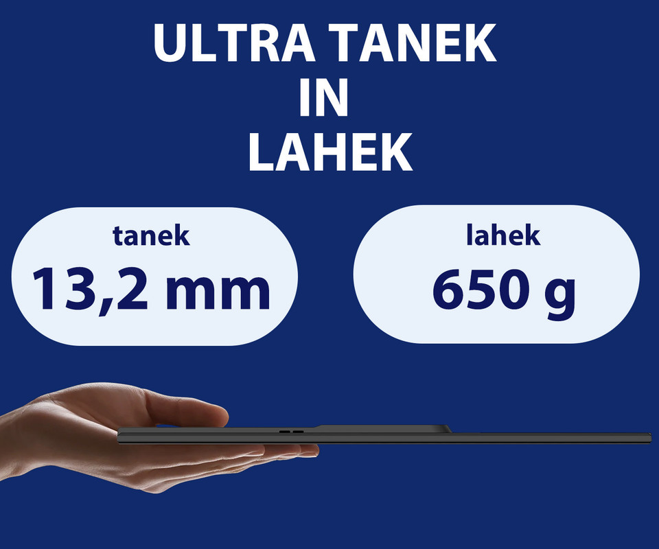- Ultra tanek in lahek - samo 13,2 mm in 650 g