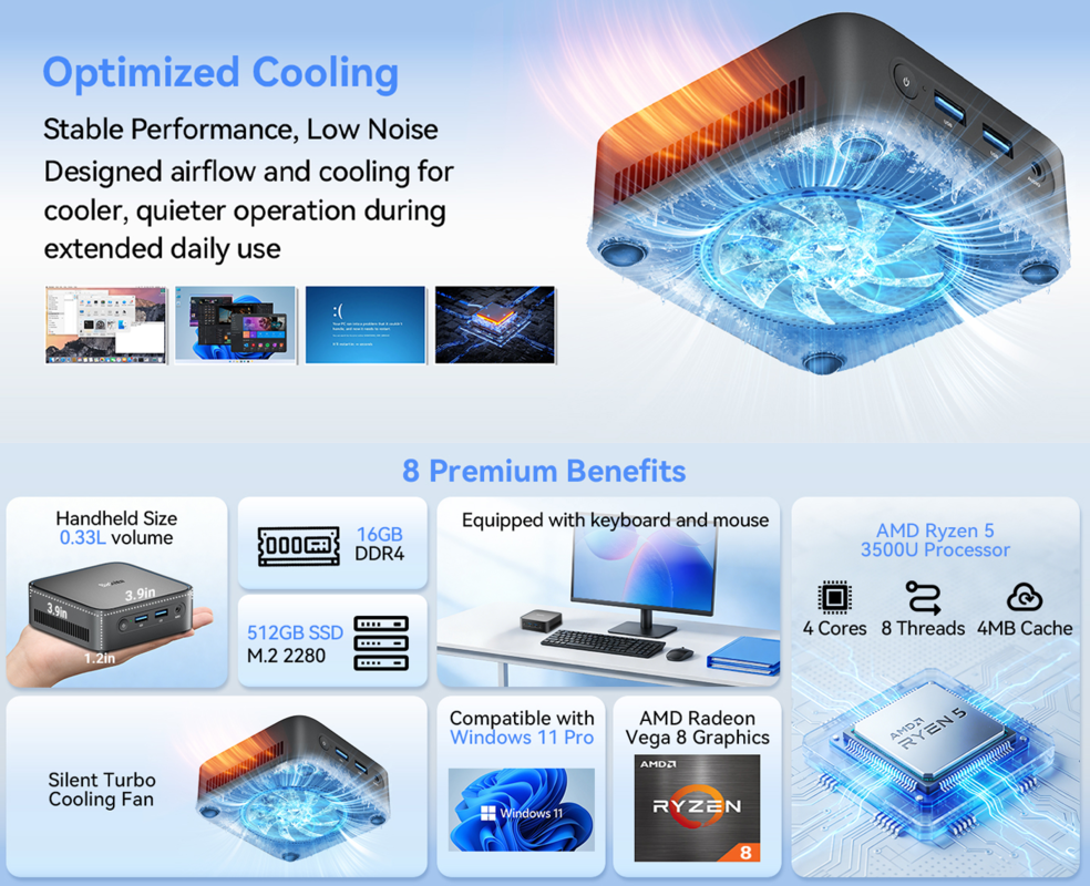 - mini računalnik Blackview MP50 (16GB + 512 GB SSD, AMD Ryzen™ 5 3500U)