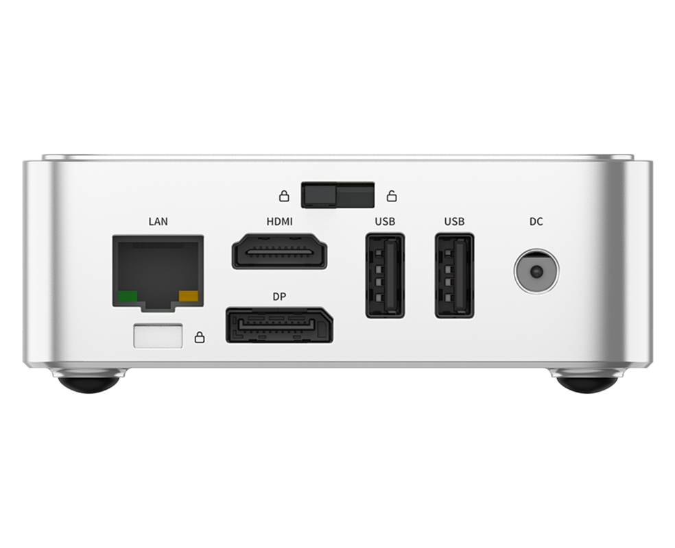 - Priklop vseh naprav - Na računalniku je veliko vhodov za priklop in povezavo dodatnih naprav. Povežete lahko do 3 zaslone. Veliko priključkov za priklop naprav (2x USB 3.2, 1x Audio Jack, 1x RJ45 LAN, 1x HDMI 2.0, 1x DP, 1x USB 2.0, 1x DC Jack)