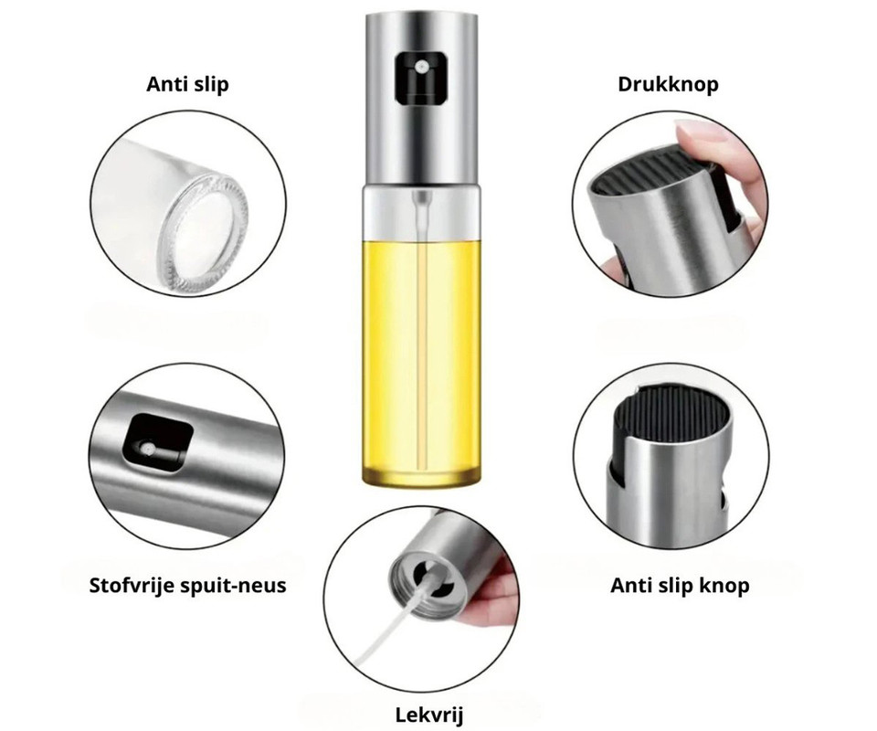 Razpršilec ni primeren le za olivno olje, ampak tudi za druge vrste olj ali kisov, zato je uporaben pri vsakodnevnem kuhanju, BBQ-ju ali pripravi solat.