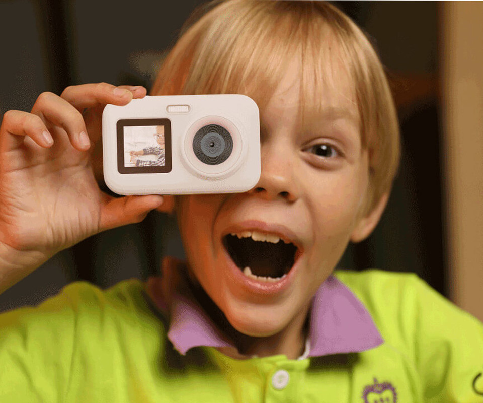 Z nadgrajeno konfiguracijo z dvema zaslonoma vaši otroci ne le fotografirajo pokrajino, ampak tudi sami posnamejo selfije. Samo odprite stikalo in uživajte v zabavi fotografiranja. Izboljšali smo jasnost fotografij in video učinke na našem 2,0-palčnem HD IPS zaslonu z zaščito za oči, kar pomaga ujeti čudovite in jasne trenutke veselja za deklice ali dečke. Otroci ga enostavno upravljajo in uživajo v fotografski izkušnji.
