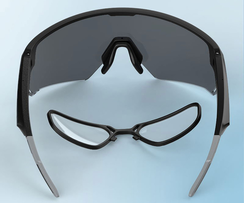 Nato ta okvir z lečami preprosto vstaviš v pametna očala D2 in jih uporabljaš z zaščito pred soncem in Bluetooth funkcijami.