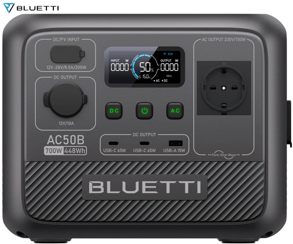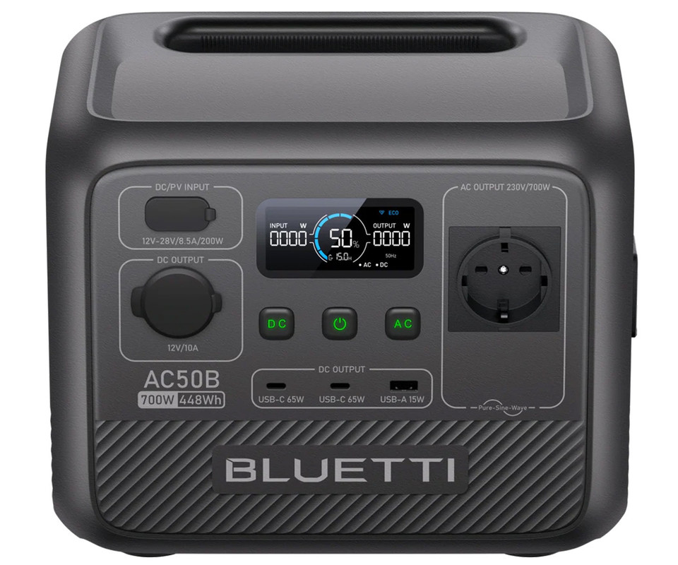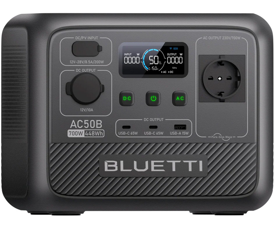 AC50B ni le polnilna postaja; je vaše osebno energetsko središče. Z vrsto vtičnic, vključno z 1 x 700 W AC vtičnico, 2 x 65 W USB-C vhodoma, 1 x 15 W USB-A vhodom in 1 x 120 W priključkom za vžigalnik, zagotavlja, da vaše življenje brez povezave z omrežjem nikoli ne bo zamudilo ritma.