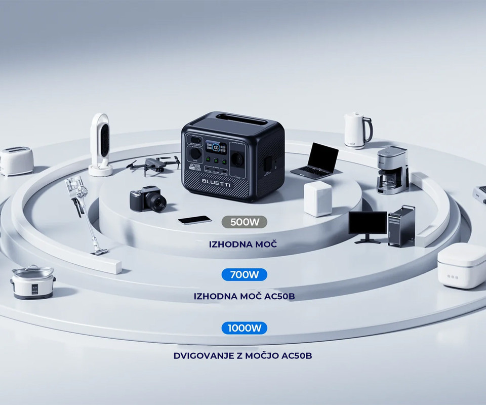 Iščete zanesljiv, kompakten in okolju prijazen vir energije? Ne iščite več! Bluetti AC50B prenosna polnilna postaja z močjo 700W, kapaciteto neverjetnih 448Wh (51.2V, 40Ah) in možnostjo razširjevanja kapacitete je tukaj, da spremeni vašo izkušnjo polnjenja in napajanja naprav.