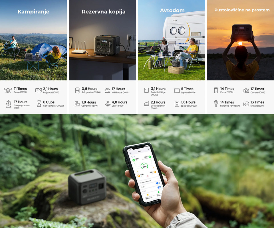 Sprostite se in udobno namestite! Aplikacija BLUETTI vam omogoča daljinsko upravljanje in spremljanje porabe energije v realnem času, stanja baterije, nadgradenj OTA in še več!