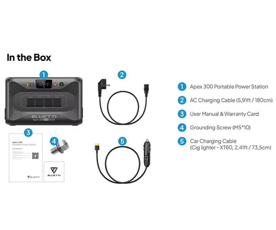 • Napajanje za avtodome in kombije - podajte se na pot z APEX 300 – tiho in čisto rešitvijo za napajanje, ki lahko nadomesti ali deluje skupaj z vašim generatorjem. Ne glede na to, ali gre za vikend oddih ali dolgo potovanje, uživajte v preprostem izmeničnem in enosmernem napajanju*, da bo vaš avtodom deloval učinkovito. Za enosmerno napajanje boste potrebovali Bluetti Hub D1.*