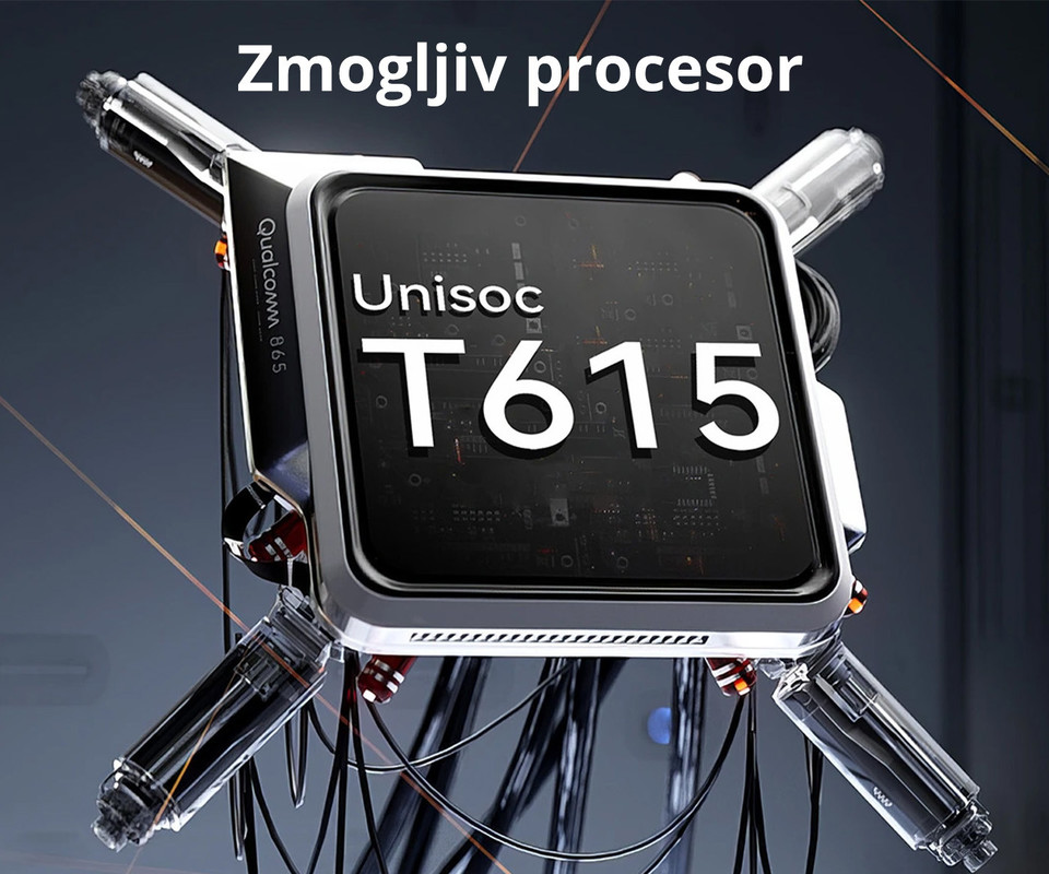 Hiter in zmogljiv procesor Unisoc T615 zagotavlja bliskovito odzivnost pri opravljanju nalog, igranju igric ter ogledu video vsebin.