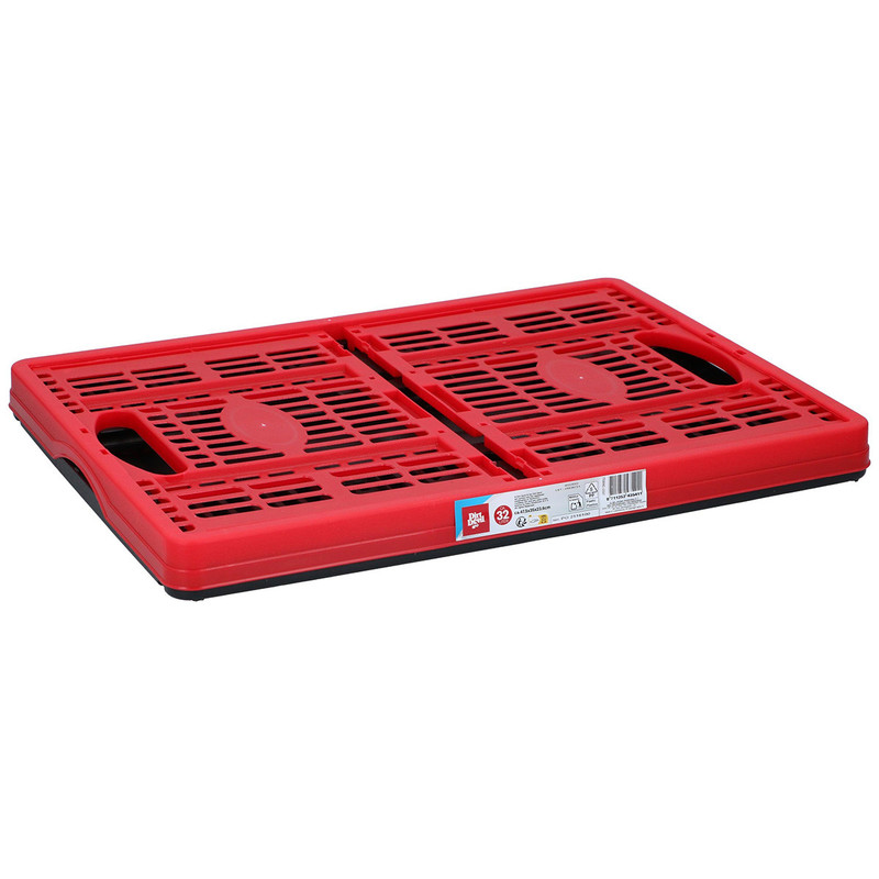 Vsestranska zložljiva škatla s prostornino 32 litrov in dimenzijami 47,5 x 35 x 23,6 cm, ki ponuja dovolj prostora za shranjevanje ali prenašanje raznovrstnih predmetov — od nakupovalnih artiklov, športne opreme ali orodja do stvari v prtljažniku avtomobila.
