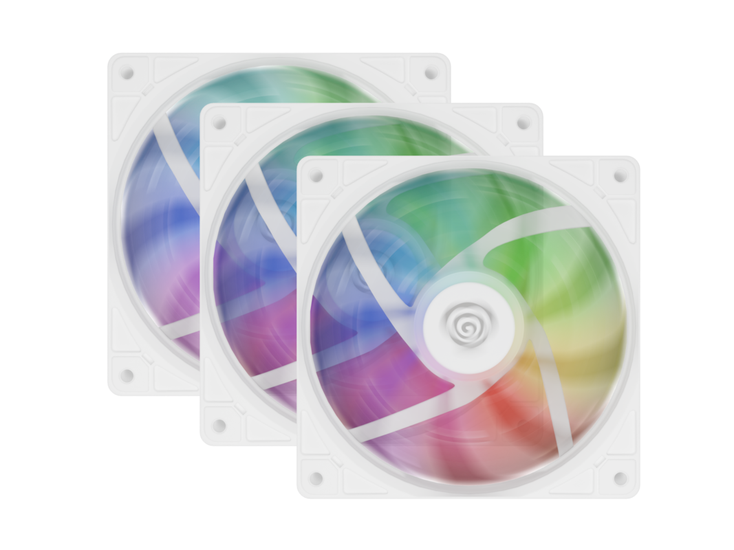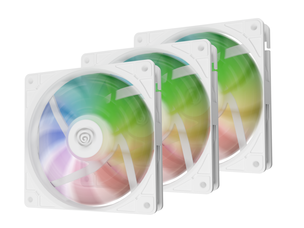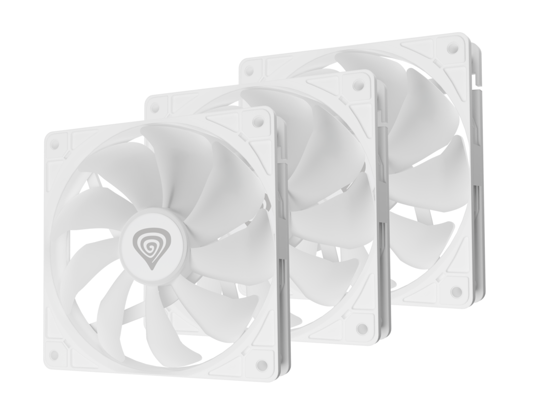 GENESIS OXAL 120 ARGB 3-PACK ventilatorji za računalnik / ohišje, univerzalni, 120mm velikost, do 1450 RPM, ultra tiho delovanje, blazinice proti vibracijam, ARGB LED osvetlitev, 3-PIN konektor, bel