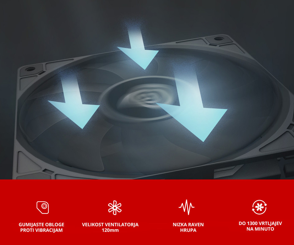 GENESIS OXAL 120 ventilator za računalnik / ohišje, univerzalni, 120mm velikost, do 1300 RPM, ultra tiho delovanje, blazinice proti vibracijam, 3-PIN konektor, črn