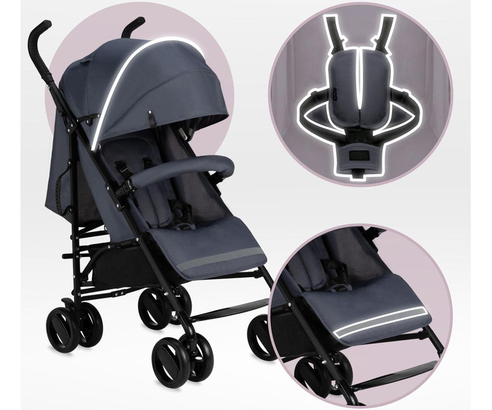 Za boljšo vidnost v slabših svetlobnih razmerah poskrbijo odsevni elementi na oblazinjenju, kar poveča varnost med večernimi sprehodi.