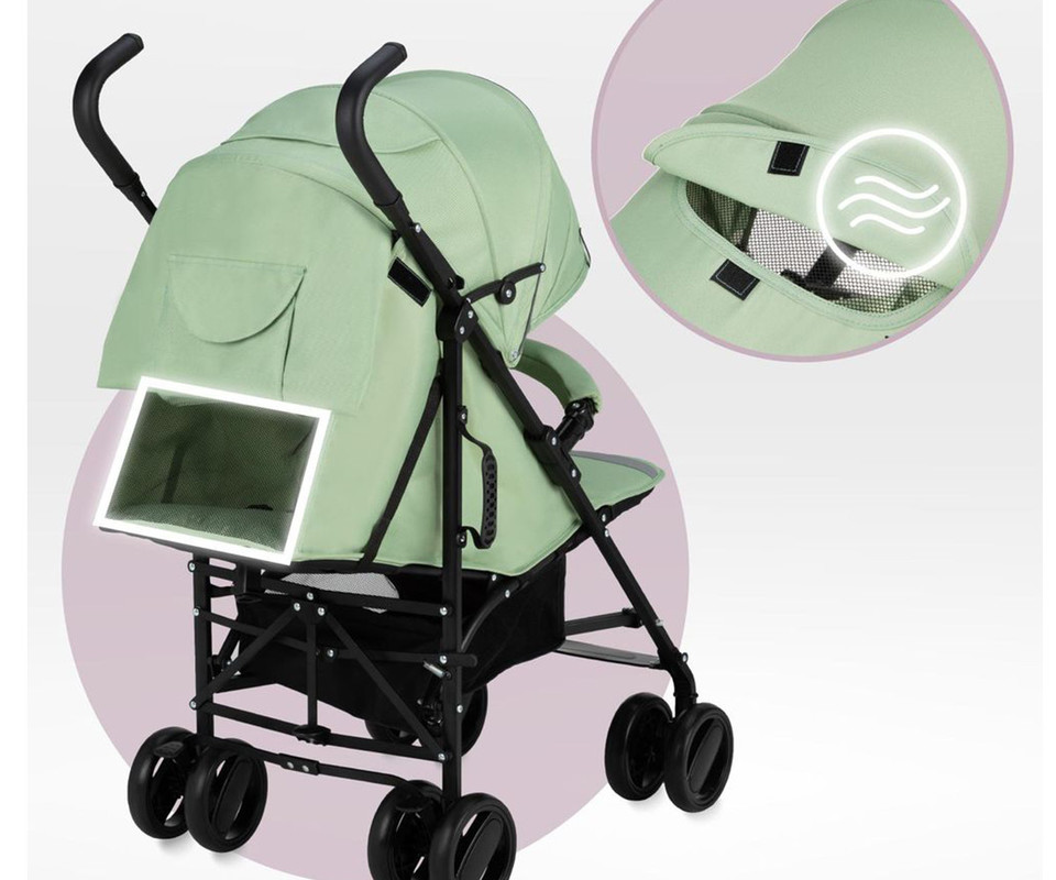 MoMi AKIRA poskrbi za udobje tudi v toplejših dneh. V strešici ima prezračevalno okno, ki omogoča stalno kroženje zraka in pomaga ohranjati prijetno temperaturo – še posebej poleti.