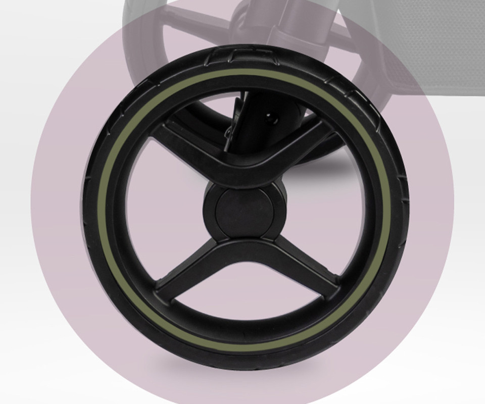 Kolesa vozička MoMi MIYA so izdelana iz trpežne, proti predrtju odporne pene EVA, zato vam med hojo ni potrebno skrbeti za nepričakovane situacije. Zaradi velike velikosti koles: predaj – 7” (17,8 cm), zadaj – 10” (25,4 cm), se voziček odlično, tudi na najzahtevnejših površinah. Kolesa so vrtljiva , okretna in opremljena s popolnim blaženjem udarcev , kar zagotavlja gladko vožnjo tudi po neravnih površinah. Sprednja kolesa imajo zaporo krmiljenja , kar dodatno olajša vožnjo po težkem terenu in olajša premagovanje ovir na poti.