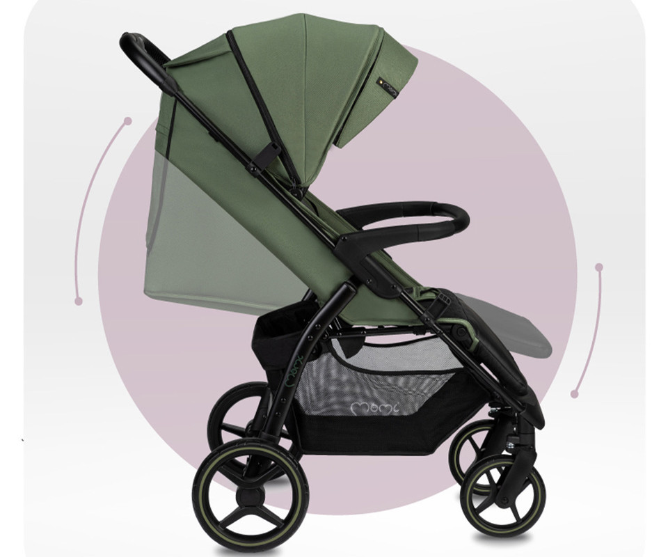 MoMi MIYA je voziček, ki se zaradi velikih koles in polnega vzmetenja z lahkoto spopade z vsakim terenom. Voziček je opremljen s široko paleto dodatne opreme.