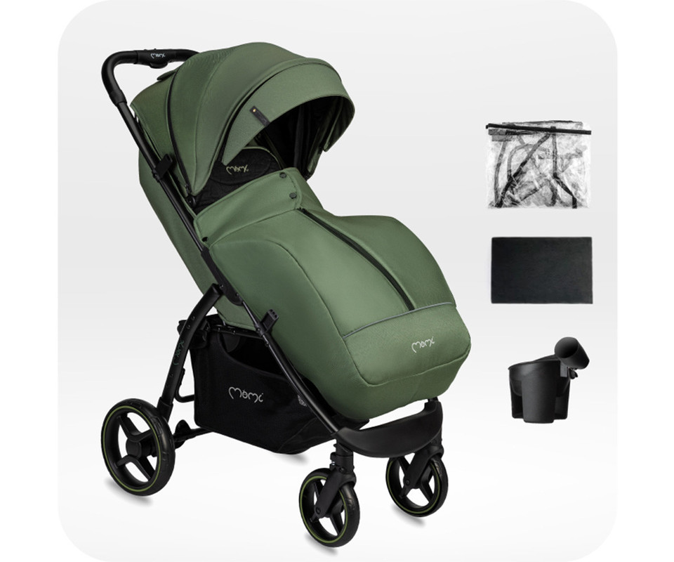 MoMi MIYA je voziček, ki se zaradi velikih koles in polnega vzmetenja spopade tudi z najzahtevnejšim terenom. Ima širok, udoben sedež ter nastavljivo naslonjalo in oporo za noge . Voziček je opremljen z obsežnim kompletom dodatkov , vključno z držalom za skodelico, mrežo proti komarjem, dežno prevleko in navlako za noge . Ima tudi prostorno nakupovalno košaro .
