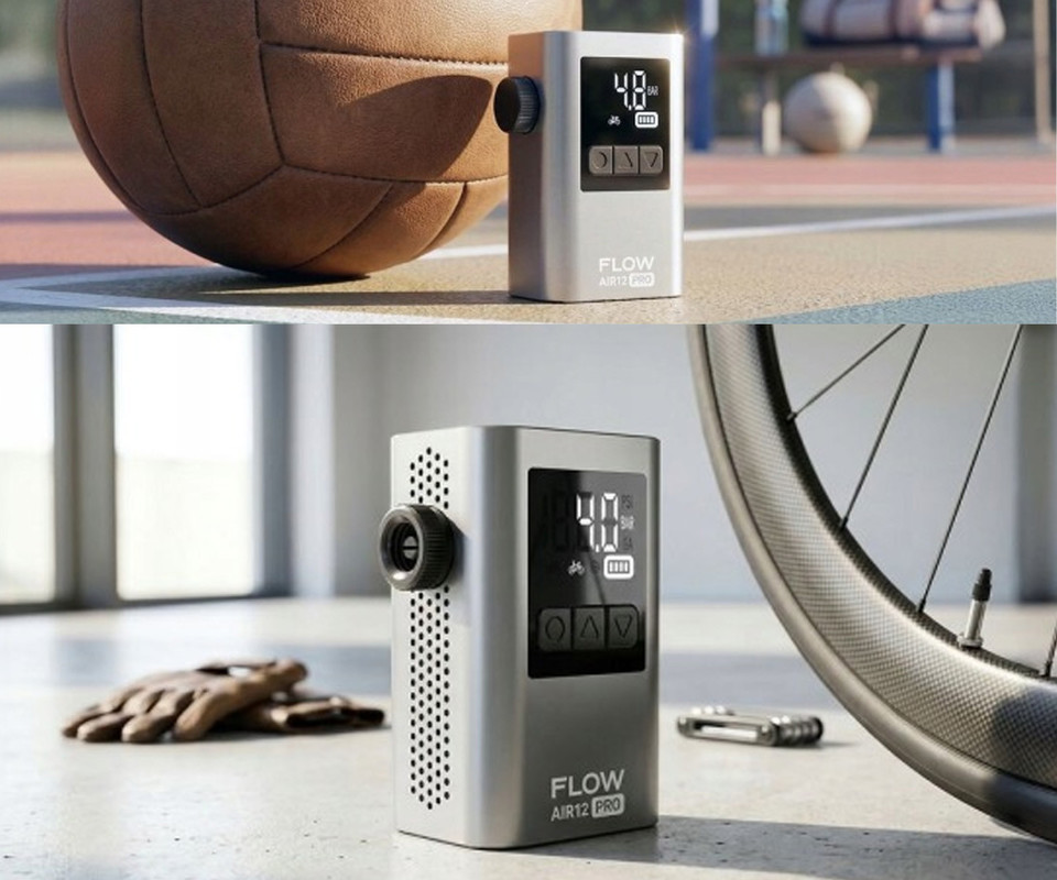 Kolesarske pustolovščine pogosto vključujejo tudi druge dejavnosti. Zato je črpalka NAVITEL Flow AIR12 PRO opremljena z adapterji Dunlop, Presta in Schrader , ki so združljivi z večino koles. Komplet vključuje tudi šobo za kroglo , tako da lahko po vožnji hitro pripravite svojo športno opremo – za spontano tekmo ali trening.