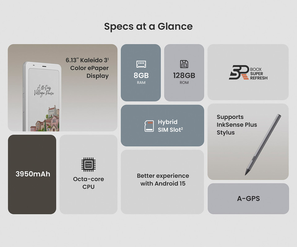 - Nadgrajen 8-jedrni procesor s tehnologijo BOOX Super Refresh