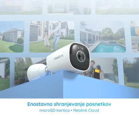 - Shranjevanje posnetkov: microSD kartica (do 128GB) ali Reolink Cloud