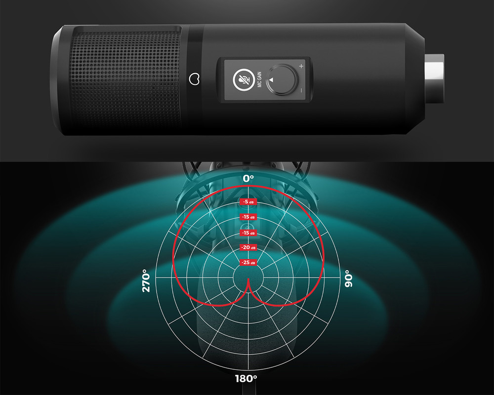 Genesis Radium 400 G2 je mikrofon s kardioidno karakteristiko. To zagotavlja, da zajame zvoke, ki prihajajo iz določene smeri (spredaj in ob straneh), namesto z zadnje strani naprave. V praksi to zagotavlja odpravo neželenih hrupov v ozadju in večji nadzor nad zvokom.