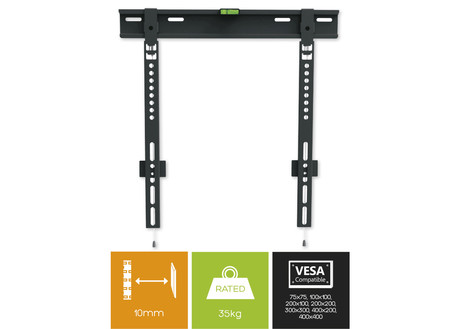 PLATINET OMEGA OUTV400SF nosilec za TV sprejemnik, 23"-65", fiksni, ultra tanka oblika, do 36kg, VESA standard do 400x400, jeklo, črn