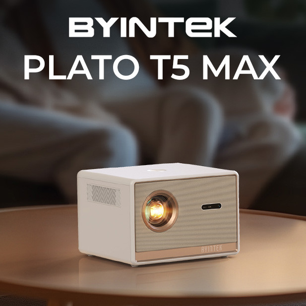 Podjetje BYINTEK predstavlja najnovejši in ultra zmogljiv prenosni pametni projektor PLATO T5 MAX. Projektor kompaktnih dimenzij in modernega izgleda v sebi skriva odlične lastnosti in opremo, ki bo poskrbela za najboljšo uporabniško izkušnjo. Ne verjamete? Prepričajte se sami in pustite, da projektor poskrbi za predvajanje in ogled vaših najljubših vsebin, kjerkoli in kadarkoli!