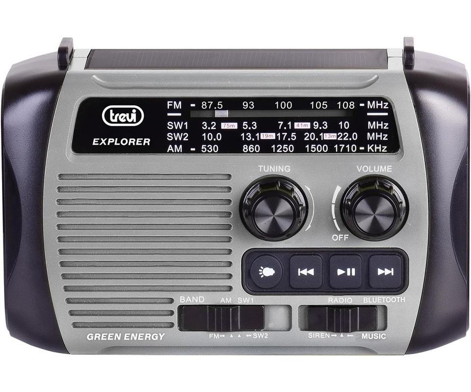 Nikoli ne ostanite brez baterije! Trevi RA 7F30 BT ponuja več možnosti polnjenja: prek ročnega alternatorja, integrirane sončne celice (največ 80 mA) za okolju prijazno energijo ali praktičnega priključka USB Type-C za hitro in sodobno polnjenje.