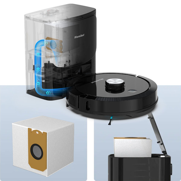 Spoznajte Mamibot EXVAC900S - vrhunski 3v1 robotski sesalnik, zasnovan za najboljšo izkušnjo čiščenja! Ta elegantna in zmogljiva naprava ima napredne funkcije in tehnologije, s katerimi je čiščenje, pomivanje in sesanje tal preprosto in brez težav: najnovejša LDS 5.0 navigacija, polnilna postaja s funkcijo samodejnega praznjenja, izjemna sesalna moč 4000 Pa, vgrajena polnilna baterija s kapaciteto 5200mAh, ultra tanek dizajn, WiFi povezovanje, IR senzorji proti trkom in padanju, ter brezplačna aplikacija za pametne naprave.