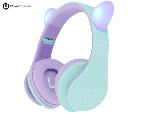 PowerLocus P2 KIDS brezžične naglavne slušalke, otroške, Bluetooth, polnilna baterija, do 15 ur, LED ...