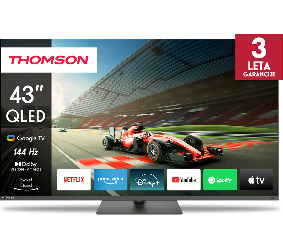 Doživite tekoče slike in visoko odzivnost v bogati kakovosti 4K UHD s Thomson Google TV 43" QLED Pro.