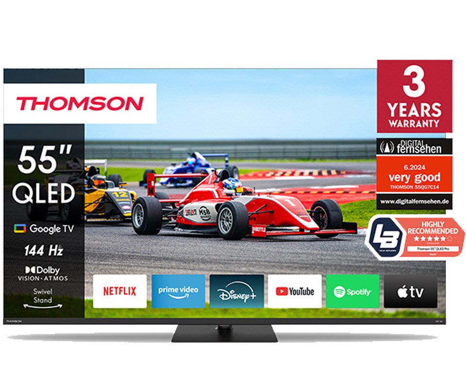 THOMSON 55QG7C14 QLED Pro TV sprejemnik, 139cm (55"), 4K UHD, Google TV, 144Hz, WiFi, Bluetooth, HDR10, Dolby Atmos, Dolby Vision, Google Assistant, Chromecast, vrtljivo stojalo, pametni daljinec