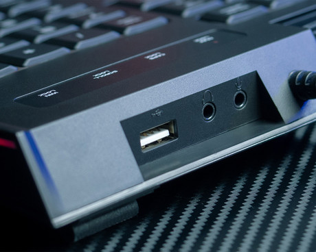 Lith 400 RGB dodatno razširi svojo funkcionalnost, saj vam čim bolj približa najpomembnejše priključke. Na zadnji strani tipkovnice sta 2 USB vhoda in dve vhoda za priklop slušalk in mikrofona, ki vam omogočata učinkovito povezavo ne le dodatnih zunanjih naprav ali USB ključkov, temveč tudi slušalke z mikrofonom.