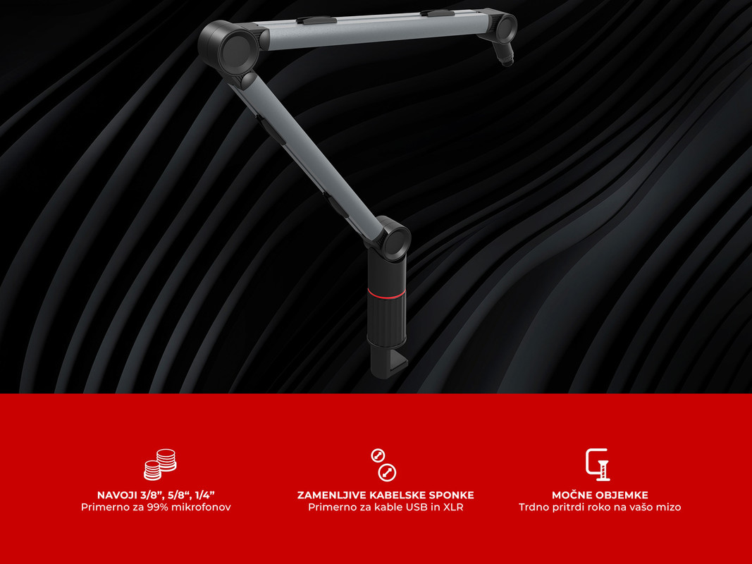 Odkrijte Thulium 700 – profesionalno držalo za mikrofon, zasnovano za najzahtevnejše uporabnike. Držalo Thulium 700, ki je združljivo z 99 % mikrofonov na trgu, je odgovor na naraščajoče potrebe igralcev, streamerjev in ustvarjalcev vsebin. Ponuja izjemno robustnost in stabilnost, njegova edinstvena zasnova pa omogoča delo z mikrofoni, ki tehtajo do 1 kg . Zahvaljujoč nastavljivi napenjalni sili in večjemu kotu zlaganja kot pri konkurenčnih modelih Thulium 700 omogoča priročno namestitev v širok razpon udobnih položajev na mizi.