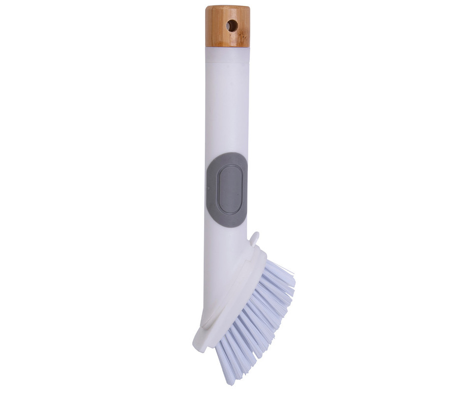 Krtača za pomivanje posode Alpina ni le funkcionalna, ampak tudi elegantna. Kombinacija bele in sive barve ustvarja sodoben videz, ki se poda vsaki kuhinji. Krtača je izdelana iz trpežnega polipropilena in bambusa, kar zagotavlja trden oprijem in dolgo življenjsko dobo. Dozirnik mila je izdelan iz TPR (termoplastične gume), kar zagotavlja prožnost in vzdržljivost. Ta izdelek ni le praktična izbira, temveč tudi eleganten dodatek vaši kuhinji.