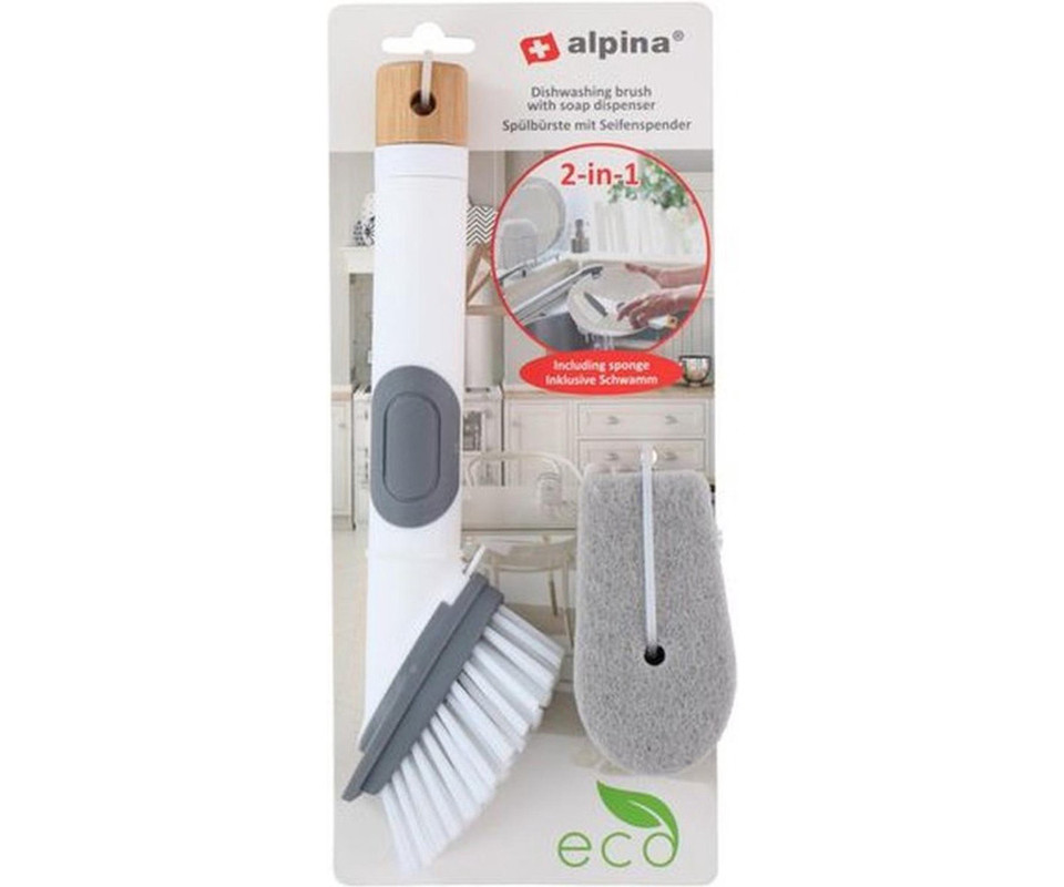 Krtača za pomivanje posode z vgrajenim dozirnikom mila Alpina je vaš novi najboljši prijatelj v kuhinji. Z dolžino 25 cm in široko glavo je ta krtača idealna za čiščenje večjih predmetov, kot so krožniki in ponve. Vgrajen dozirnik mila omogoča še učinkovitejše in priročnejše pomivanje posode. Preprosto pritisnite gumb in milo se enakomerno porazdeli po krtači. To priročno orodje 2 v 1 je idealno za vsakodnevno uporabo in zagotavlja, da je vaša posoda vedno bleščeče čista.