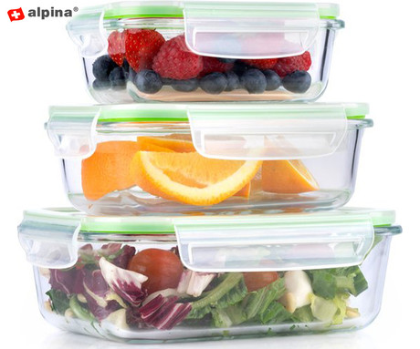 ALPINA komplet posod za shranjevanje živil in hrane, 3x posoda, 370/640/1050 ml, steklo, plastični ...