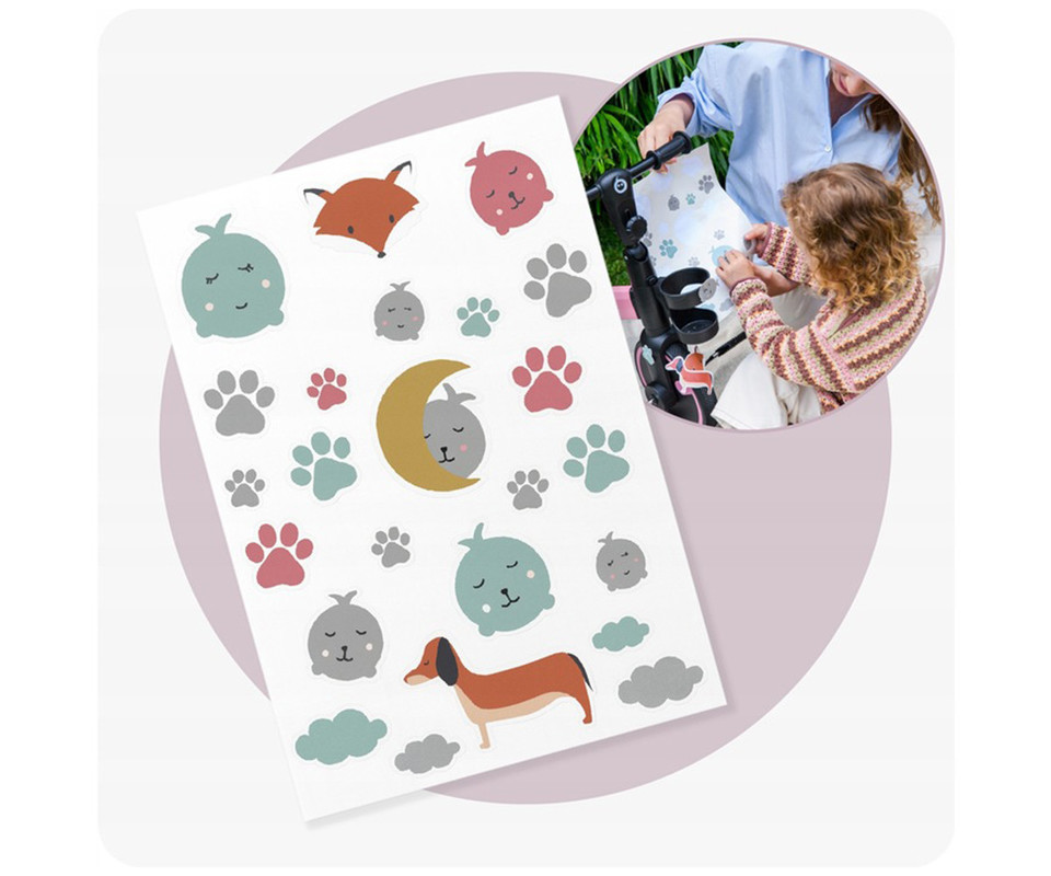 Vsak otrok si želi, da bi bilo njegovo kolo edinstveno. Zato komplet vključuje pisan komplet nalepk , s katerimi lahko vaš malček okrasi okvir in svojemu kolesu doda personaliziran pridih. Nalepke se odlično obnesejo tudi kot okraski za čelado – dodatna zabava in varnost v enem!