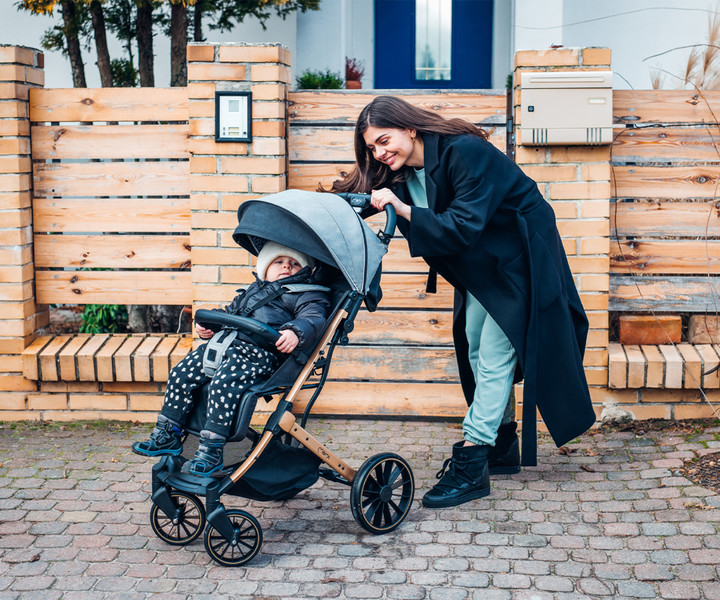 - Zložljiv dizajn – voziček je kompakten tudi ko je zložen. To olajša njegovo prenašanje in shranjevanje.